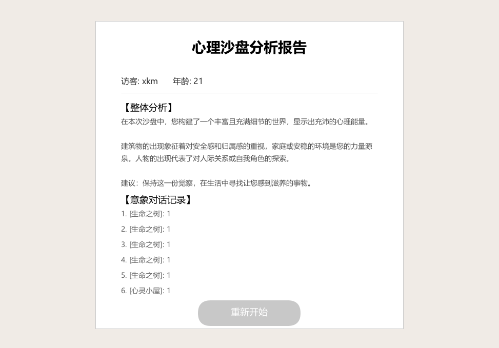 if (treeCount > houseCount) report += "大量的植物意象表明您当前极其渴望成长与生机,可能正在经历内在的蜕变。";