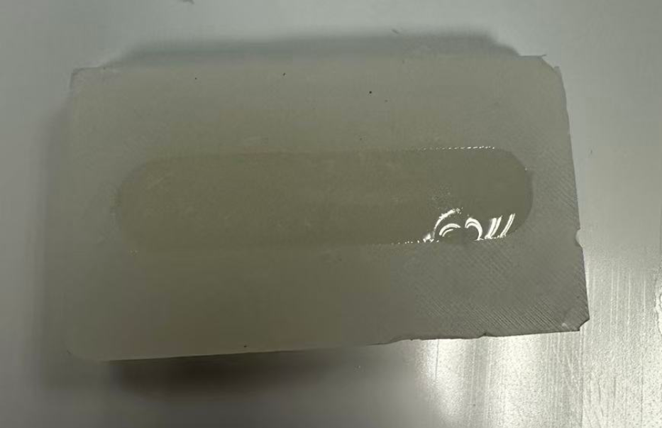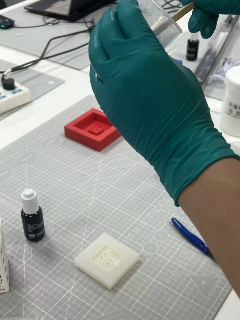 After mixing in gel shown on the right. The ratio mixed 50:50 stirring for half an hour to an hour. Poured in the mixed gel into the shell 3-D printed.